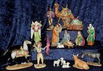 Was diesen Punkt angeht, gibt es die unterschiedlichsten Herangehensweisen. Manche Sammler verschreiben sich allein den Krippen einer einzigen Marke und setzen alles daran, ein Vollprogramm inklusive Zusatzsortiment zusammen zu tragen. Andere sammeln nur besonders alte Krippen und wieder andere, nur solche aus der Nachkriegszeit. Ich kenne auch Sammler, für die ausschließlich Krippen einer einzigen bestimmten Kollektionsgröße, z. B. 30 cm, in Frage kommen. Ich für mich, habe entschieden nichts kategorisch auszuschließen. In meine Sammlung gehören sowohl mehrere sehr alte Krippen als auch einige solche jüngeren Datums. Es gibt Krippen in den Größen von 12 cm bis 60 cm, klassische Nazarener wie typische Künstler Krippen und doch ergibt all´ das in der Summe, eine reichhaltige, sinnstiftende Sammlung. Jenseits aller Kategorien, in die man Krippen einsortieren und unterscheiden kann, entscheidet am Ende einfach auch der Geschmack, die Liebe zu den Objekten. Letztlich sind Krippen unterschiedlicher Materialien in meiner Sammlung, kleinere "Abteilungen" für Porzellan & Steinzeug (woraus alle "Göbel Krippen" in Wahrheit gefertigt sind), Holz, Kunstharz (darunter auch bekleidete Figuren) und sogar modernen Werkstoffen, wie dem Polyresin ("Polystone"). Die Krippen dieser Materialien sind jede für sich aus anderen Erwägungen als die Gipsfiguren hinzu gekommen, sozusagen Randerscheinungen, und das Sammeln von weiteren Objekten dieser Materialien ist im Wesentlichen abgeschlossen.